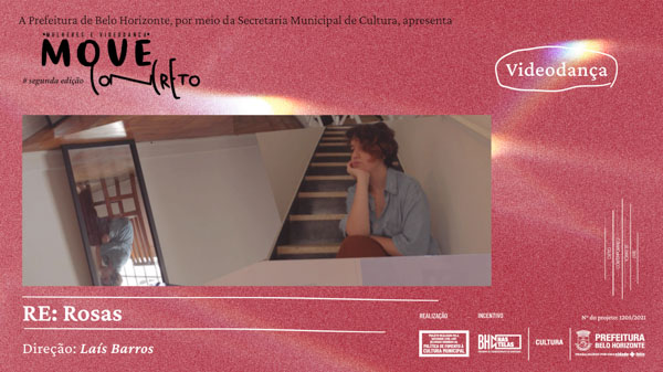 Sinopse: Re:rosas é uma releitura da obra Rosas danst Rosas (Anne Teresa de Keersmaeker). Foi gravada durante o isolamento causado pelo Covid-19 em diferentes cômodos da casa da artista, os quais posteriormente foram remontados e entrelaçados num looping de movimentos e sons. Re:rosas retrata na repetição dos movimentos a mecanicidade do dia a dia sobreposta de uma solitária ansiedade – e o desejo latente de abandonar o ciclo e olhar para fora.