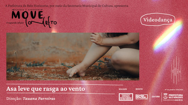 Sinopse: Asa leve que rasga ao vento é um videodança que investiga as tensões do existir a partir de questões existenciais sobre alteridade e o sentimento de pertencimento. Com a colaboração da coreógrafa Luciana Lara que no trabalho exerce a função de dramaturgista, as imagens de Thaís Mallon e a edição de Isabelle Araújo, a performer e dançarina Tauana Parreiras concebe uma dramaturgia e uma obra coreográfica que desconstrói sentidos narrativos e virtuosos para alcançar uma perspectiva íntima e íntegra de uma experiencia interna. Quem assiste o videodança é testemunha de uma viagem emocional e convidado a engajar em uma perspectiva sensória com o simples e com o ritmo da sucessão de imagens e pequenos movimentos